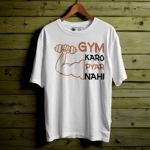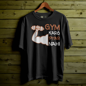 Bold “GYM KARO” front print – motivational and straight-up desi
