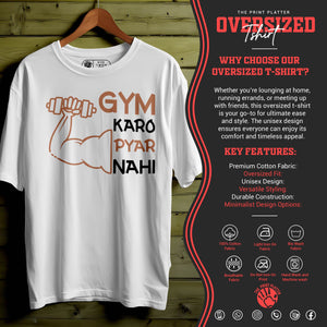 No excuses, just reps. The GYM Karo Oversized Unisex T-Shirt is your perfect workout motivator — or your subtle roast to the lazy squad. Whether you're a gym freak, fitness newbie, or someone who talks big and lifts bigger, this bold tee adds power to your wardrobe and attitude to your day.