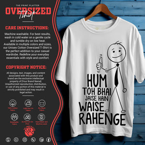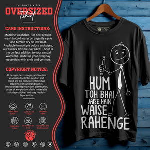 The Hum To Bhai Oversized Unisex T-Shirt is for those who carry unmatched swag and effortless charm. Whether you’re the leader of the group or just the one with killer comebacks, this tee lets your vibe speak for itself. It’s bold, humorous, and unapologetically you — with a desi twist.