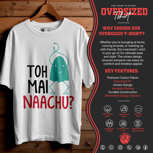 If someone says “Toh kya?”, you say “Toh Mai Naachu!” This Oversized Unisex T-Shirt is made for the filmy, the fearless, and the fun-loving souls who own every moment with style and sass. Inspired by a legendary dialogue that screams confidence and chaos, this tee is your go-to pick when you want to bring drama... in the best way.