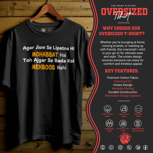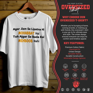 Heavy lines for heavier moods — the "Agar Jism Se" Oversized Unisex T-Shirt is designed for the thinkers, the poets, the heartbroken, and the expressive souls who wear their emotions with pride. It’s more than a t-shirt — it’s a statement that hits different.