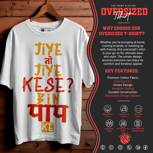 Jiye Toh Jiye Kaise Bin Pap Ke Oversized Unisex T-Shirt | Bollywood Dialogues Tee | 100% Cotton | Trendy Streetwear for Men & Women| | 382