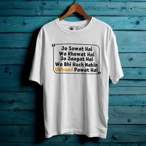 This one’s for the ones who love sleep more than drama! The Jo Sowat Hai Woh Khowat Hai Oversized Unisex T-Shirt delivers laid-back vibes with a savage desi twist. A hilarious and relatable quote that turns your lazy habit into a lifestyle statement.