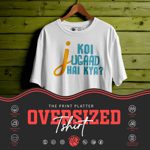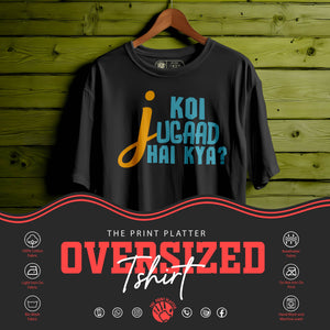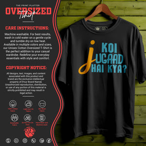 Koi Jugaad Hai Kya Oversized Unisex T-Shirt | Desi Hustler Quote Tee | Funny Hindi T-Shirt | 100% Cotton Streetwear for Men & Women|392