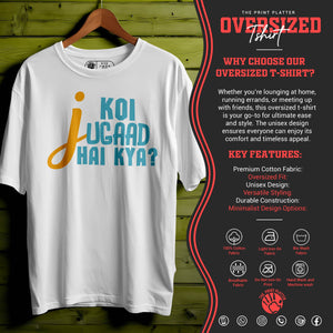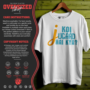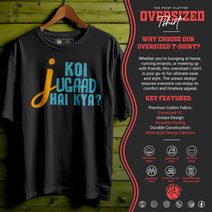 Looking for comfort with a dash of desi attitude? This "Koi Jugaad Hai Kya?" Oversized Unisex T-Shirt is made for the jugaadu in you! Whether you’re hustling through college life, managing daily chaos, or just chilling with friends — this statement tee speaks your vibe.