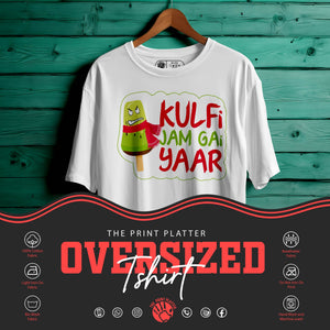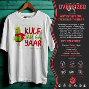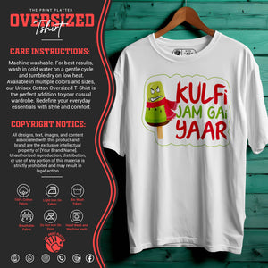 "Kulfi Jam Gyi Yaar" Oversized Unisex T-Shirt | Funny Desi Quote Tee | 100% Cotton | Cool & Comfy Streetwear for Men & Women| 395