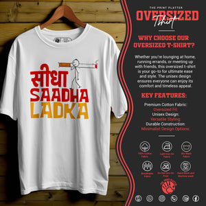 Whether you're looking to add a fun piece to your collection or searching for a gift that's both stylish and humorous, the Sidha Saadha Ladka Oversized Unisex T-Shirt is the perfect choice.
