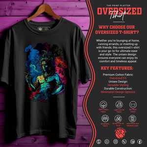 Unleash your inner deity with the GOD SHIVA Oversized Unisex T-Shirt. Made with high-quality materials and a loose fit, this shirt is both comfortable and stylish. Perfect for those who want to make a statement and show off their playful, quirky side. Embrace your god-like confidence and rock this unique t-shirt.