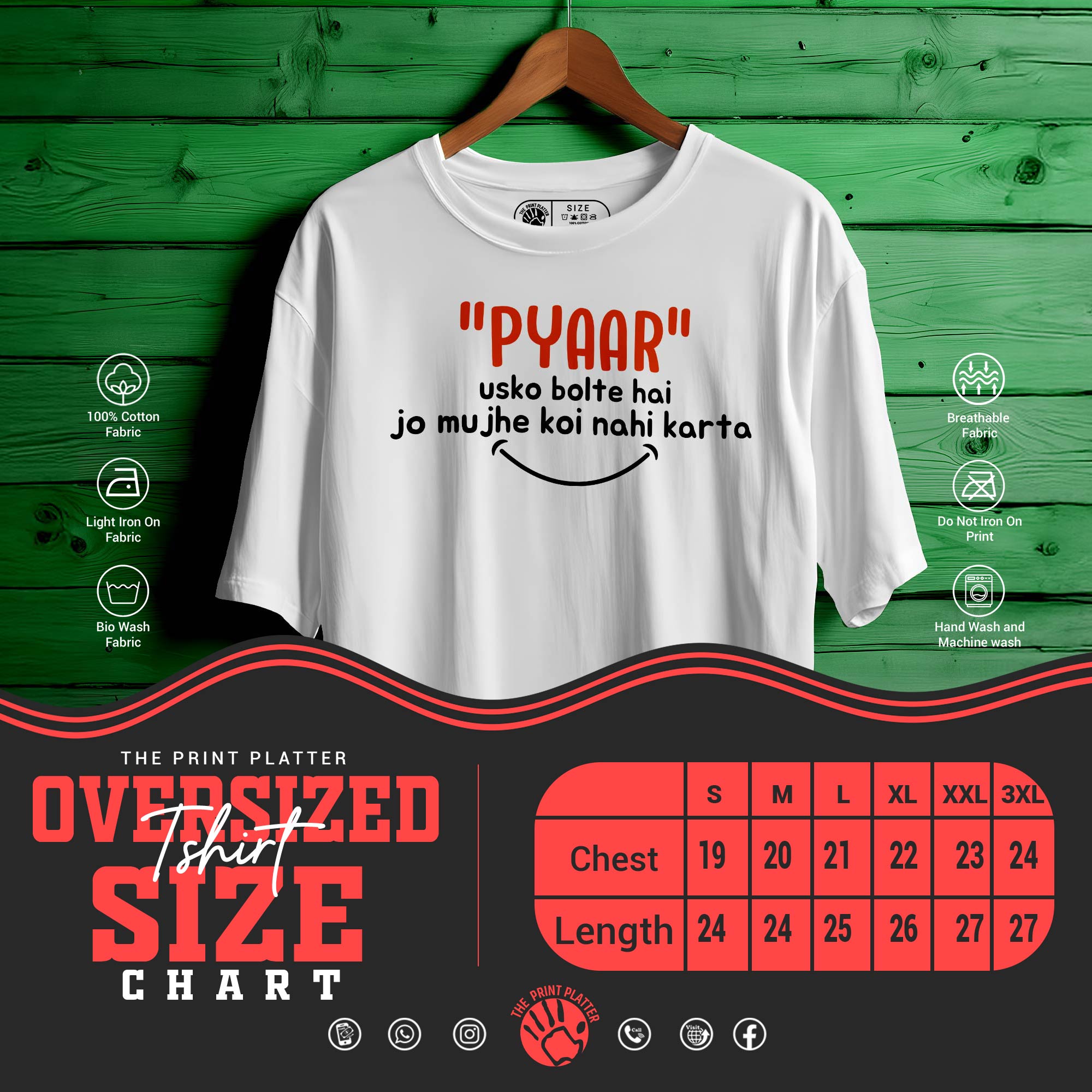 PYAR USKO BOLTE HAI JO MUJHSE KOI NHI KARTA Oversized Unisex T-Shirt – Filmy Feels, Forever |412