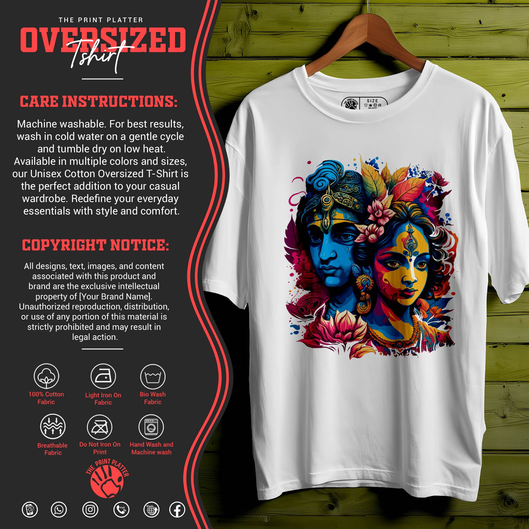 Whether you're attending a spiritual gathering, celebrating Janmashtami, or simply expressing your devotion, the Radha Krishna Oversized Unisex T-Shirt offers a blend of comfort, style, and spiritual connection.