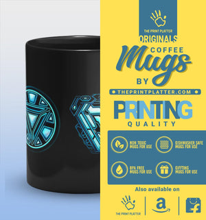 Arc Reactor Full Black Cermic Coffee Mug 330 ml, Microwave & Dishwasher Safe| CM-R193