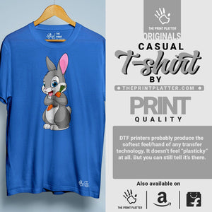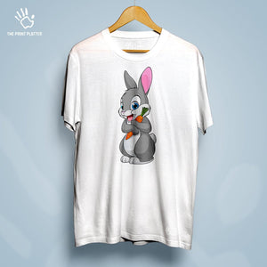 Get ready to turn heads with our Baby Bunny Cotton Bio Wash T-shirt! Made from high-quality 100% cotton, this classic fit shirt is not only comfortable, but also durable. Perfect for any occasion - from casual wear to parties - our t-shirt features a crew neckline, half sleeves and unique printed graphics. Channel your inner trendsetter with this must-have addition to your wardrobe from THE PRINT PLATTER.