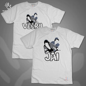 Get ready to make a statement with our Jai Veeru Cotton Bio Wash 180gsm T-shirt! Made from premium 100% cotton, this classic fit t-shirt is both comfortable and long-lasting. With a crew neckline and half sleeves, it's perfect for any occasion - from everyday wear to special events. Proudly made in India and featuring unique printed graphics, it's a must-have addition to your wardrobe. Available from our brand THE PRINT PLATTER - for more stylish and quirky t-shirts, check us out!