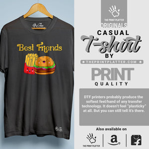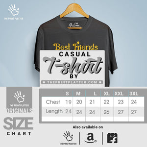 Unleash your inner trendsetter with our Best Friends Cotton Bio Wash 180gsm T-shirt! Made with 100% cotton and proudly crafted in India, this durable t-shirt boasts a classic fit, crew neckline, and half sleeves for any occasion. And with our unique printed graphics, you'll be sure to turn heads. Add a touch of style and humor to your wardrobe with THE PRINT PLATTER!