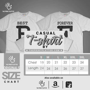 Unleash your inner trendsetter with our Best Friends Forever BFF Cotton Bio Wash T-shirt! Made from 100% high-quality cotton, this classic fit tee is not only comfortable, but also durable. Perfect for any occasion, from casual hangouts to parties. Crafted in India and featuring unique printed graphics, make a statement with THE PRINT PLATTER's must-have addition to your wardrobe!