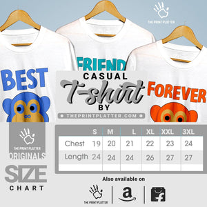 Get ready to make a statement with our 100% cotton Best Friends Forever Bio Wash T-shirt! Perfect for any occasion, this durable and comfortable classic fit t-shirt features a crew neckline and half sleeves. Proudly made in India with unique printed graphics. From THE PRINT PLATTER, your go-to for trendy and quirky tees.