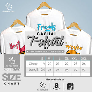 Make a statement with our Best Friends Forever Cotton Bio Wash 180gsm T-shirt! Crafted from top-notch 100% cotton, this classic fit t-shirt offers both comfort and durability. Perfect for any occasion, its crew neckline and half sleeves make it a versatile addition to your wardrobe. Express your individuality with the unique printed graphics from our brand THE PRINT PLATTER. Get yours now and stand out from the crowd!