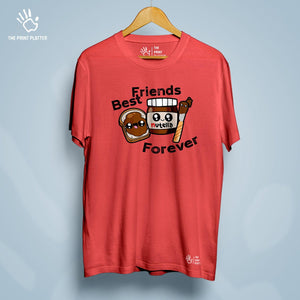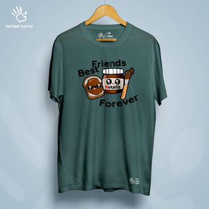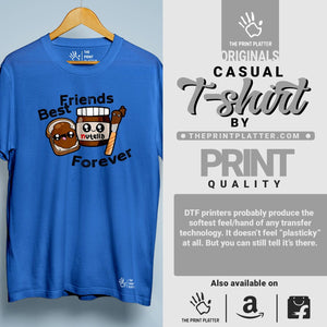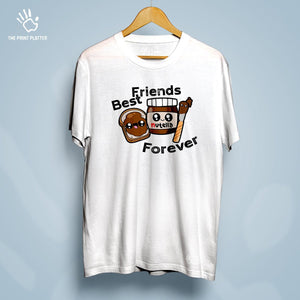 Step up your style game with our Best Friends Forever Cotton Bio Wash 180gsm T-shirt! Made from 100% premium cotton, this classic fit tee is comfortable and long-lasting. Perfect for any occasion, it features a crew neckline, half sleeves, and unique printed graphics. Proudly crafted in India, it's a must-have addition to your wardrobe. Check out THE PRINT PLATTER for more stylish and playful tees!