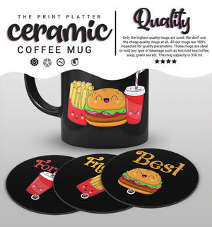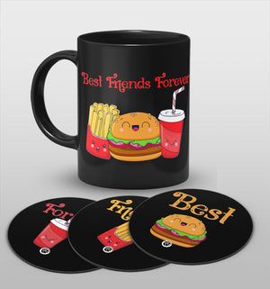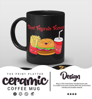 Best Friends Forever Full Black cermic Coffee Mug With Tea Coster 330 ml, Microwave & Dishwasher Safe | TM-05 Single