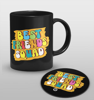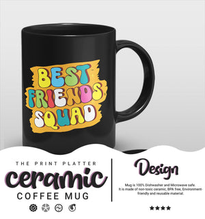 Best Friends Squad Full Black cermic Coffee Mug With Tea Coster 330 ml, Microwave & Dishwasher Safe | TM-08