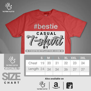 Upgrade your wardrobe with our #besties Cotton Bio Wash 180gsm T-shirt! Made from high-quality 100% cotton, this classic fit t-shirt is comfortable and durable. With a crew neckline and half sleeves, it's perfect for any occasion - casual or party. Proudly made in India, channel your inner trendsetter with our unique graphics. From THE PRINT PLATTER - for more stylish and quirky t-shirts!