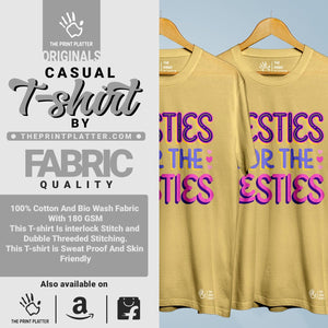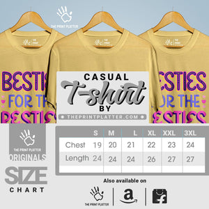 Get ready to make a statement with our Besties For The Resties Cotton Bio Wash T-shirt! This 100% cotton tee is comfy and long-lasting, featuring a crew neckline and trendy half sleeves. Proudly made in India, it's perfect for any occasion, from casual to party. Add some fun to your wardrobe with our unique printed graphics. From THE PRINT PLATTER, your go-to for stylish and quirky tees!