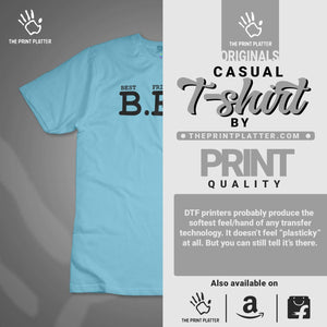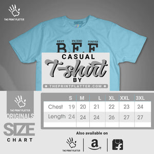 Turn heads with our BFF T-shirt from THE PRINT PLATTER. This classic fit t-shirt, made from high-quality 100% cotton, is not only comfortable but also durable. Perfect for any occasion with its crew neckline and half sleeves, this t-shirt proudly crafted in India will be a must-have addition to your wardrobe. Express your inner trendsetter with our unique printed graphics!