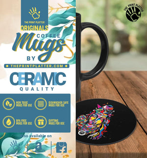 Mahadev Tripsy Inside Black Ceramic Coffee Mug With Tea Coaster 330 ml, Microwave & Dishwasher Safe| TM-04