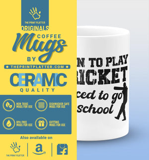 Born To Play Cricket, Forced To Go To School White Cermic Coffee Mug 330 ml, Microwave & Dishwasher Safe| CM-R163