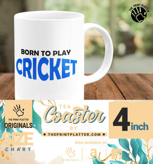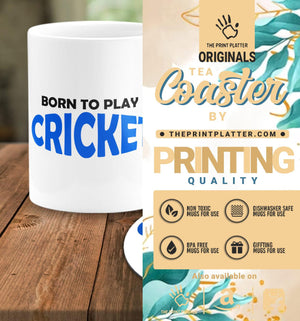 Born To Play Cricket White Cermic Coffee Mug With Tea Coster 330 ml, Microwave & Dishwasher Safe| TM-R160