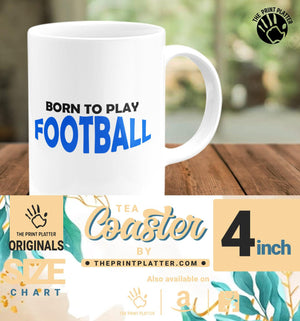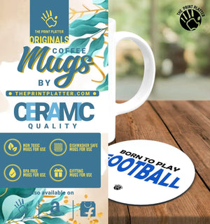 Born to Play Football White Cermic Coffee Mug With Tea Coster 330 ml, Microwave & Dishwasher Safe| TM-R153