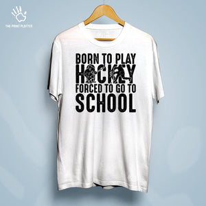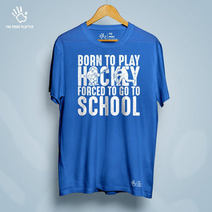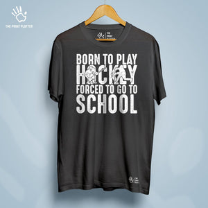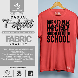 Born To Play Hockey Forced To Go To School Cotton Bio Wash 180gsm T-shirt | T-R149