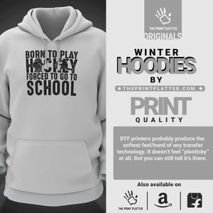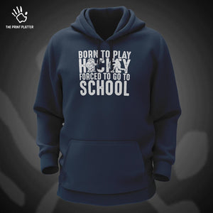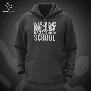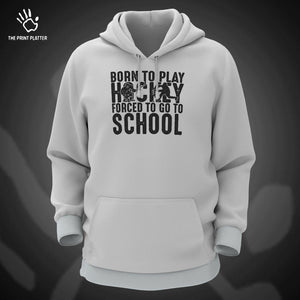 Born To Play Hockey Forced To Go To School Cotton Bio Wash 330gsm Sweatshirt with Hood for Winter | H-R149