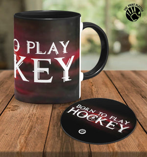 Born to Play Hockey Inside Black Cermic Coffee Mug With Tea Coster 330 ml, Microwave & Dishwasher Safe| TM-R151