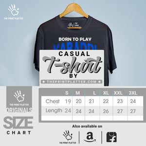 Unleash your playful side with our Born To Play Kabaddi Player Cotton Bio Wash T-shirt! Made from 100% high-quality cotton, this classic fit t-shirt is both comfortable and long-lasting. Perfect for any occasion, its unique printed graphics will make you stand out. Proudly crafted in India, get ready to turn heads with this must-have addition from THE PRINT PLATTER!