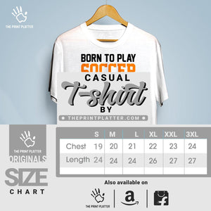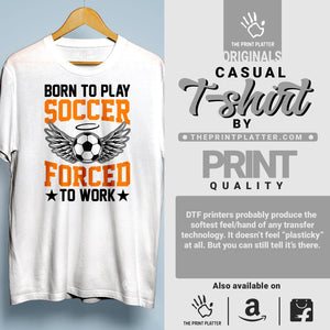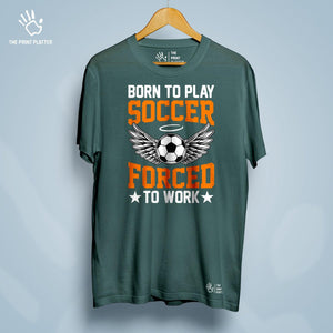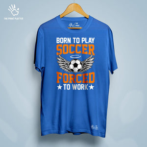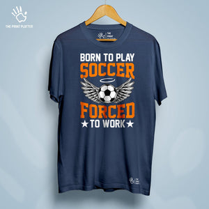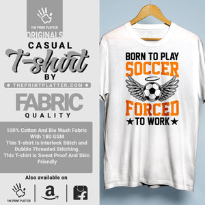 Unleash your playful side with our Born to Play Soccer Forced to Go to Work T-shirt! Made from 100% high-quality cotton, this durable tee is perfect for any occasion. With a crew neckline and half sleeves, it's a must-have for parties or casual wear. Proudly crafted in India, channel your trendsetter spirit with our unique printed graphics. From THE PRINT PLATTER, your go-to for stylish and quirky t-shirts!