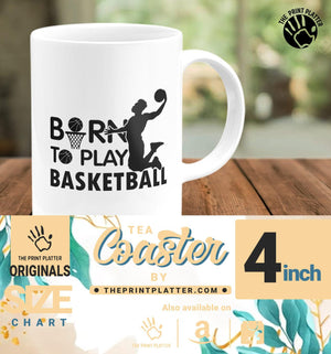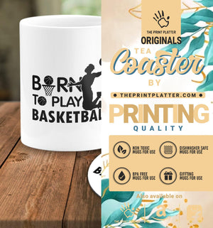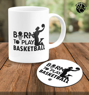 Born To Play Basketball White Cermic Coffee Mug With Tea Coster 330 ml, Microwave & Dishwasher Safe| TM-R167