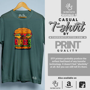 Be the life of the party in our Burger Cotton Bio Wash 180gsm T-shirt! Made from 100% high-quality cotton, this classic fit tee is both comfy and tough. Perfect for every occasion, from casual to dressy. Designed and made in India, this must-have piece features fun printed graphics. Get yours from THE PRINT PLATTER today!