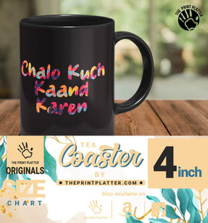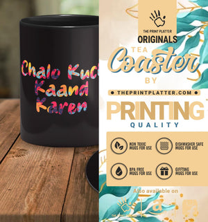 Chalo Kuch Kand Karen Full black Cermic Coffee Mug With Tea Coster 330 ml, Microwave & Dishwasher Safe| TM-R242