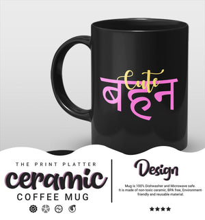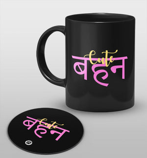 Cute Bahen Raksha Bandhan Full Black Cermic Coffee Mug With Tea Coster 330 ml, Microwave & Dishwasher Safe | TM-21