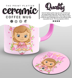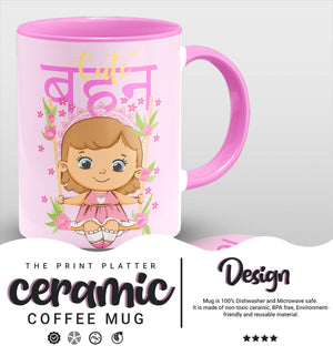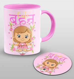 Cute Bahen Raksha Bandhan Inside Pink Cermic Coffee Mug With Tea Coster 330 ml, Microwave & Dishwasher Safe | TM-20