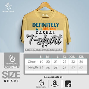 Stand out in style with our Definitely Number 7 MS Dhoni Cotton Bio Wash T-shirt. Crafted from high-quality 100% cotton, this durable classic fit t-shirt features a crew neckline and half sleeves. Perfect for any occasion, from casual to party wear. Proudly made in India and adorned with unique printed graphics. From the brand THE PRINT PLATTER, known for their stylish and quirky t-shirts. Get yours now!