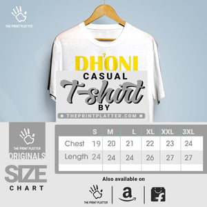 Get ready to make a statement with our Dhoni Forever Cotton Bio Wash 180gsm T-shirt! Crafted from 100% high-quality cotton, this classic fit t-shirt offers both comfort and durability. With a crew neckline and half sleeves, it's perfect for any occasion. Proudly made in India, this t-shirt showcases unique printed graphics from our brand THE PRINT PLATTER. Express your quirky style with our collection!