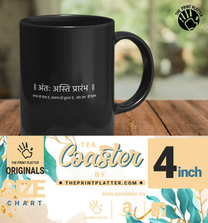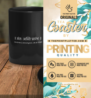 Ant He Prarambh Full Black Ceramic Coffee Mug With Tea Coaster 330 ml, Microwave & Dishwasher Safe| TM-08