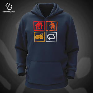 Eat Sleep Cricket Repeat Cotton Bio Wash 330gsm Sweatshirt with Hood for Winter | H-R161