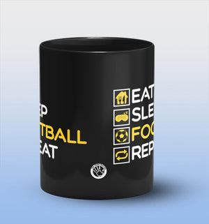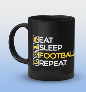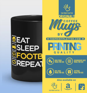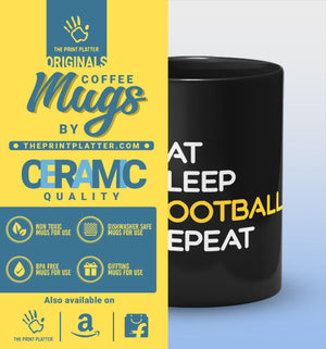 Eat Sleep Football Repeat Full Black Cermic Coffee Mug 330 ml, Microwave & Dishwasher Safe| CM-R154