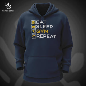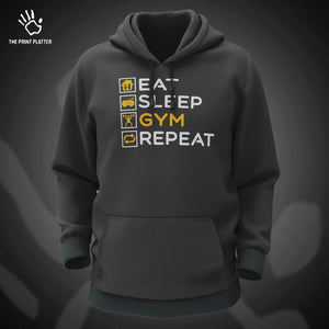 Eat Sleep Gym Repeat Cotton Bio Wash 330gsm Sweatshirt with Hood for Winter | H-R21