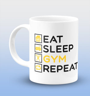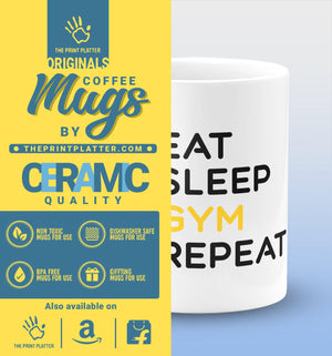 Eat Sleep Gym Repeat White Cermic Coffee Mug 330 ml, Microwave & Dishwasher Safe| CM-R21