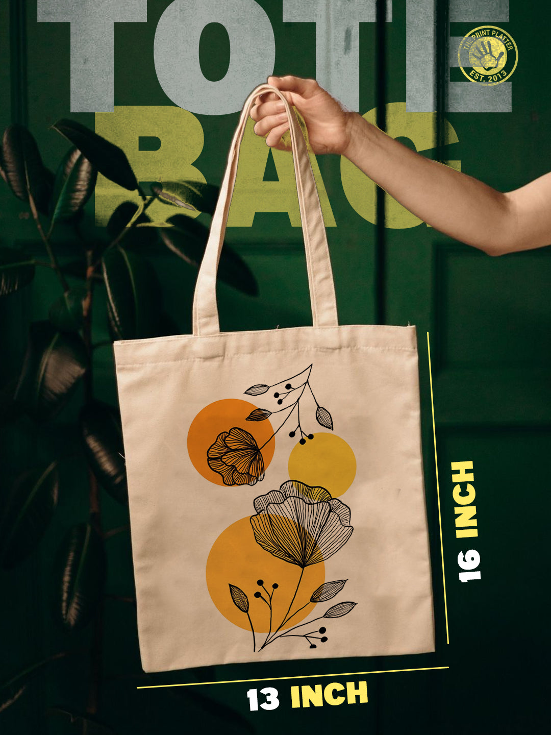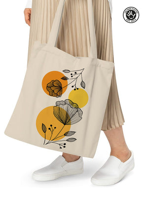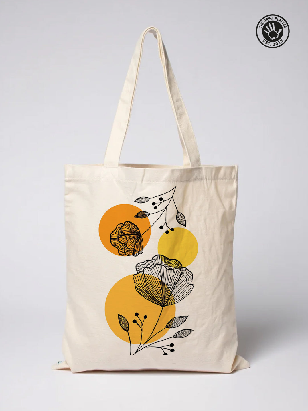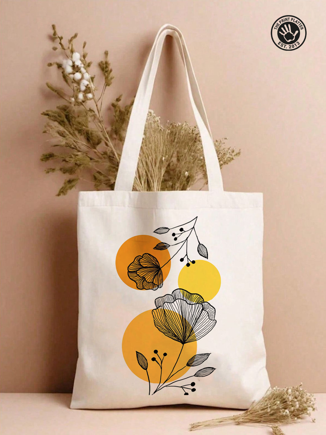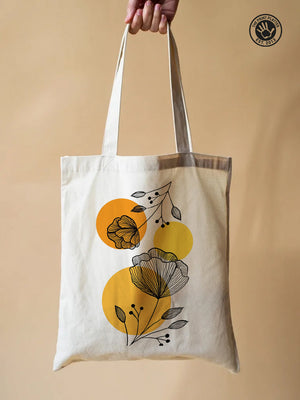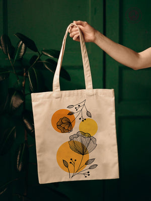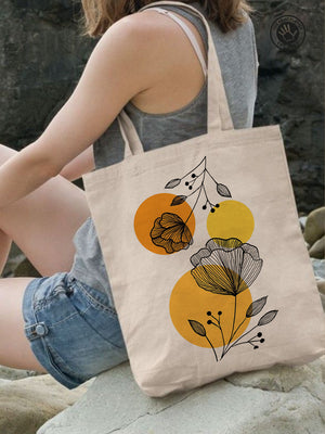 Carry a little garden wherever you go with this Floral Line Art Tote Bag from The Print Platter. Hand-drawn botanical prints bloom beautifully on natural cotton canvas, accented with cheerful warm yellow circles to add a splash of modern charm. Perfectly roomy for your daily essentials, this tote blends style and function effortlessly. Made from durable, eco-friendly materials, it’s your go-to companion for shopping, library visits, or casual outings—bringing a playful, artistic vibe to every adventure. Elevate your everyday look with art that’s as practical as it is pretty!