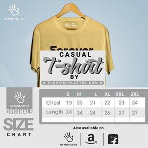 Introducing our Forever Cotton Bio Wash 180gsm T-shirt - the perfect blend of comfort and durability! Made from 100% high-quality cotton, this classic fit t-shirt is sure to turn heads with its unique printed graphics. From casual wear to parties, it's the perfect addition to your wardrobe. Proudly crafted in India by THE PRINT PLATTER - your go-to for stylish, quirky tees!